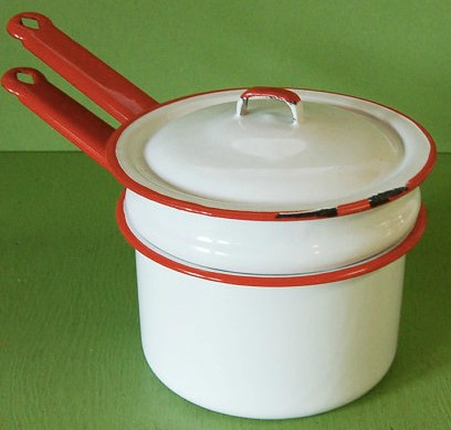 - Keep warm in a double boiler, preferably Great-Grandmother’s, until dinner is ready. Ladle into Great-Grandmother’s Blue Willow Spode serving dish. (And yes: I got that.) Enjoy.